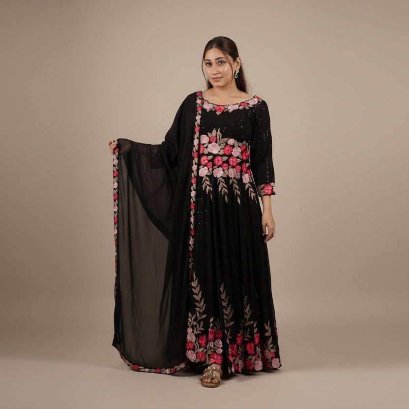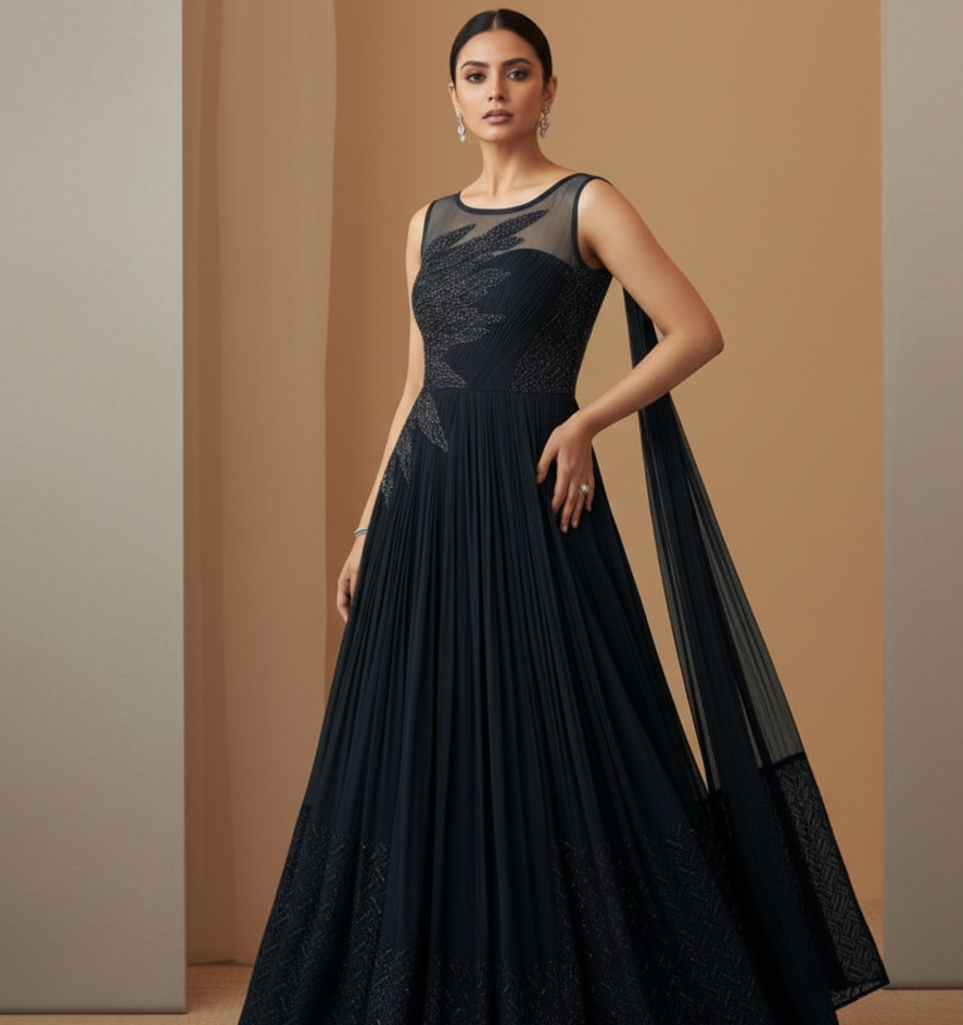 The "Mohini" Collection celebrates timeless beauty. This ethnic collection features suits and anarkalis with intricate detailing and vibrant colors, designed to enhance elegance, each piece blends tradition with contemporary style, perfect for festive celebrations and family gatherings.