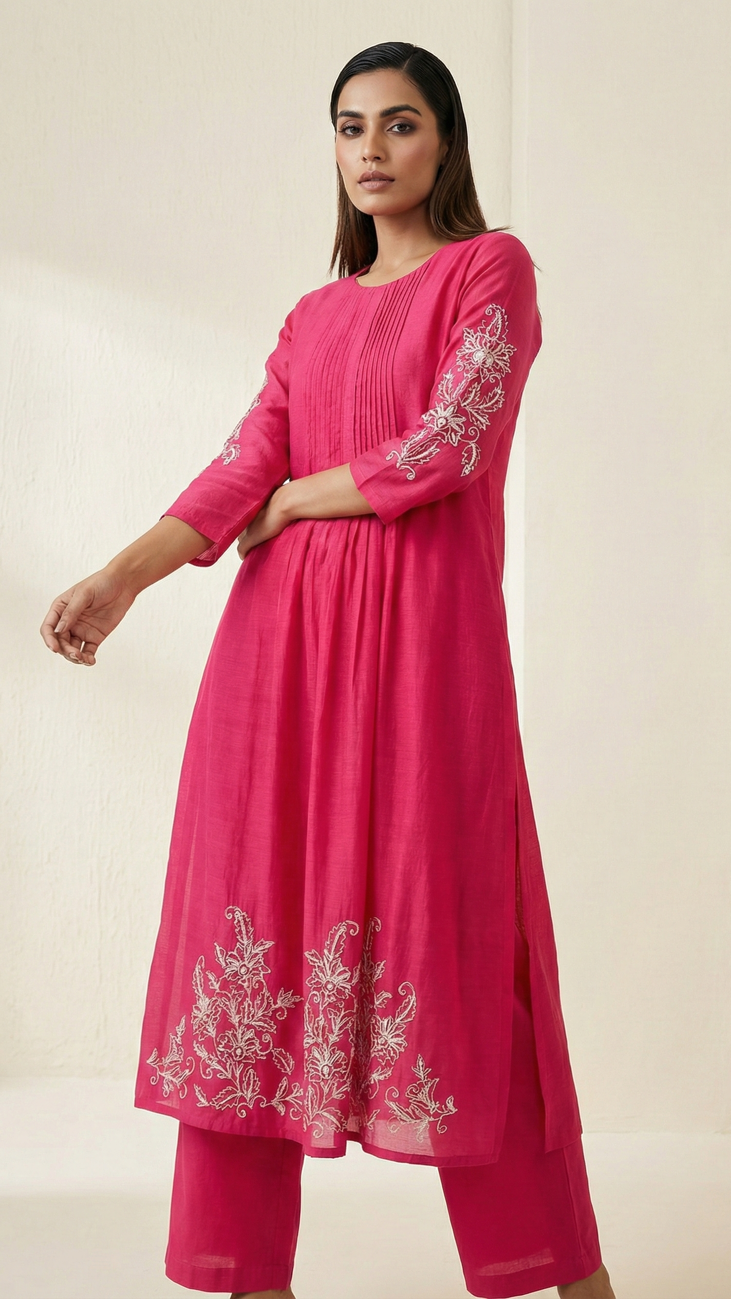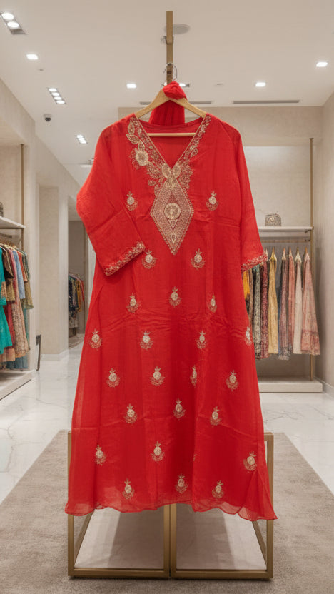 Our Traditional Collection embodies auspiciousness and celebration, offering an exquisite range of ethnic clothing inspired by Indian festivals. Featuring intricately designed sarees and suits, each piece showcases vibrant colors and luxurious fabrics.