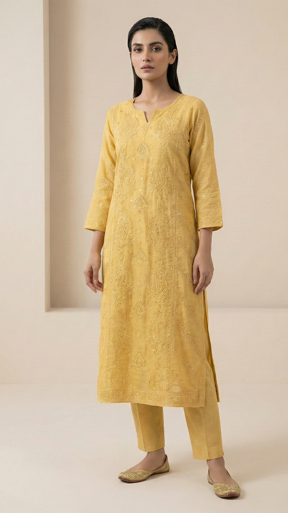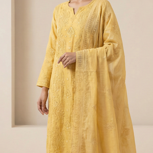 Sunlit Elegance Mul Chanderi Chikankari Suit Set