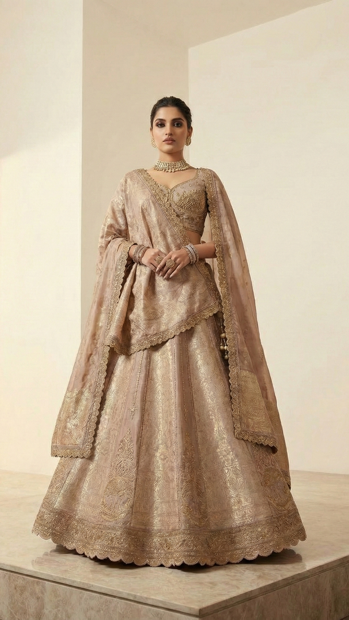 Premium Banarasi Silk Bridal Lehenga Set with Swarovski, Zari & Khatli Work
